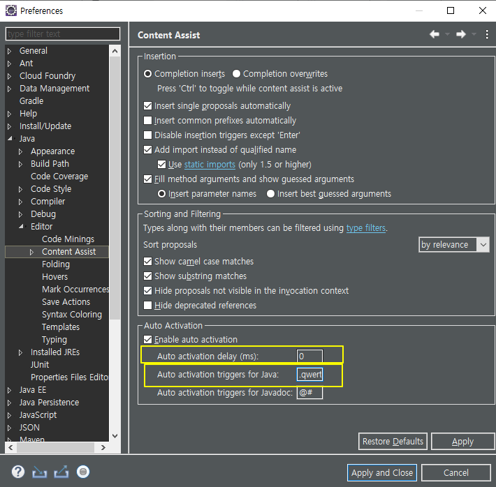 [Eclipse_꿀팁(tips)] Ctrl+Space는 그만! 글자 입력하기만하면 Content Assist(자동완성기능)가 실행되는 방