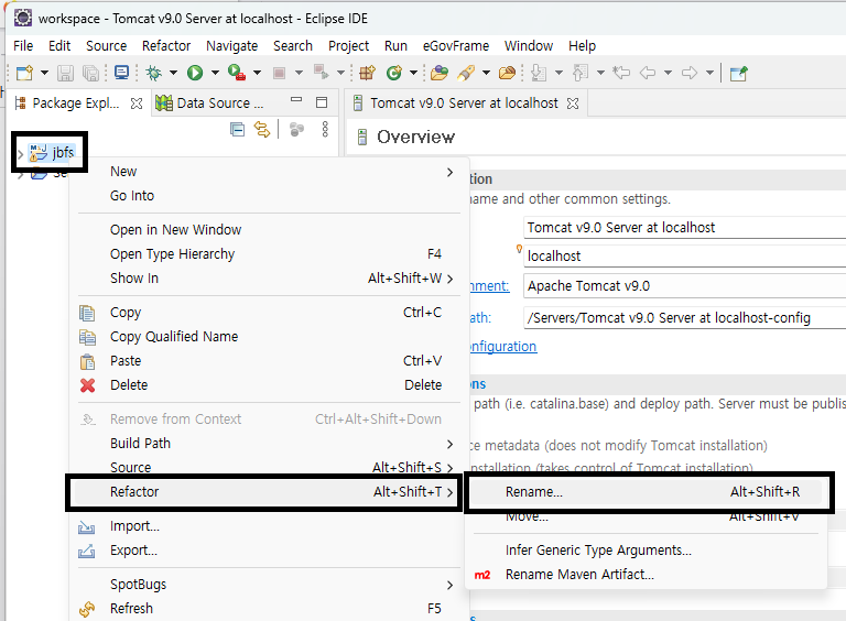 이클립스(Eclipse)에서 프로젝트명 변경 하는 방법은 다음과 같다. (윈도우 기준)
