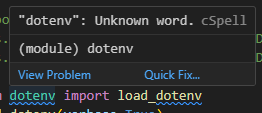 VSCode에서 철자가 틀린것으로 인식해서 수정을 권고할 때 나옴