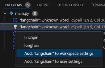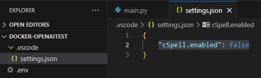 그러면 프로제트 폴더에 .vscode/settings.json 파일이 생기고 그곳에 단어가 추가됨, 경고 나오는 단어를 계속 추가하면 해당 단어의 경고가 없어짐