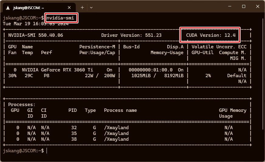 - NVIDIA GPU 드라이버 (NVIDIA Geforce RTX 3060 Ti)