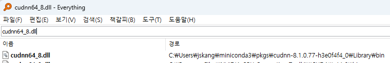 검색결과 C:\Users\jskang\miniconda3\pkgs\cudnn-8.1.0.77-h3e0f4f4_0\Library\bin 에 있었음