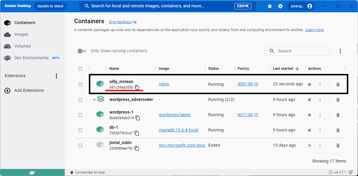 6. Docker Desktop 이 설치되어 있으면 그곳에서도 확인 가능