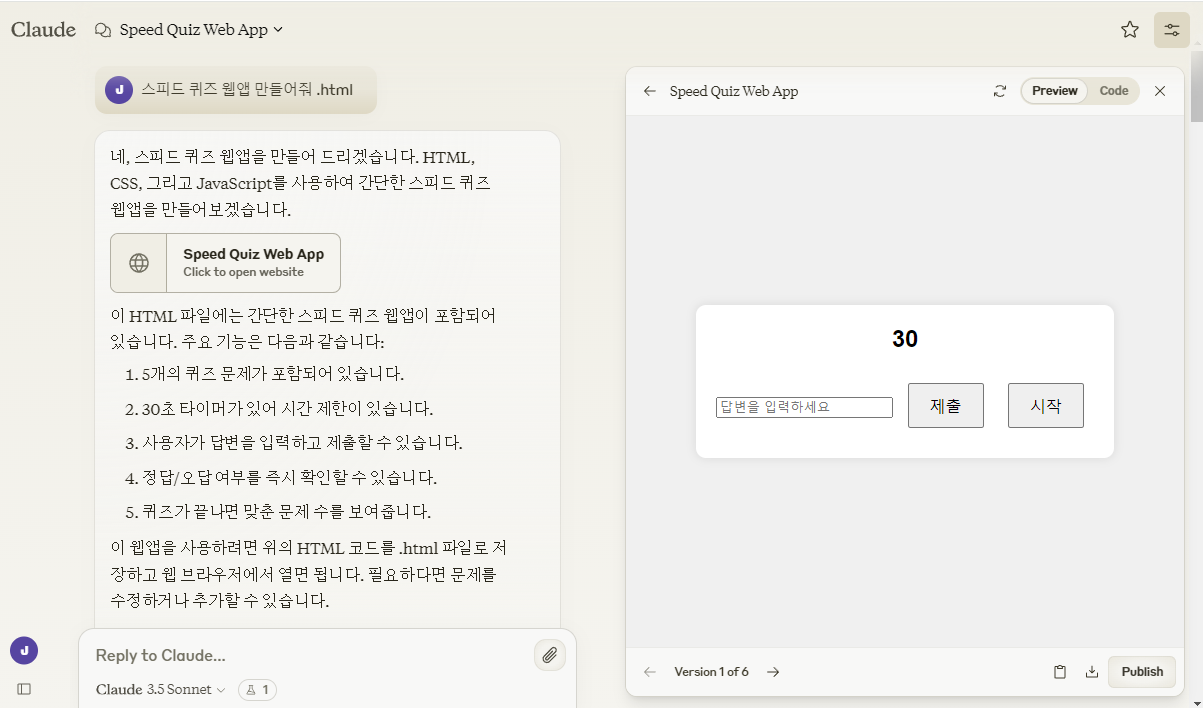 6. 코드 생성후 Artifacts 에서 코드 실행하기