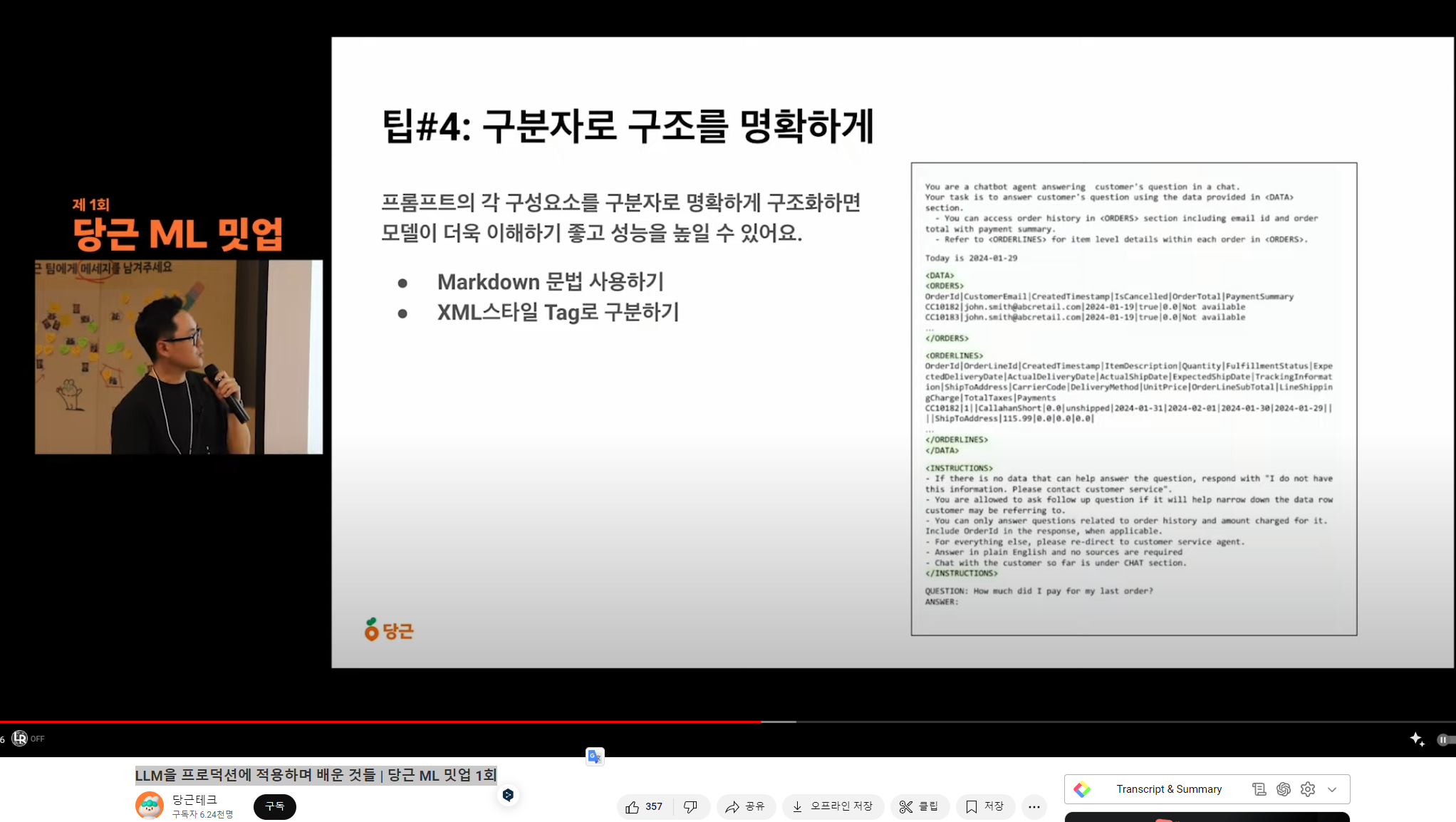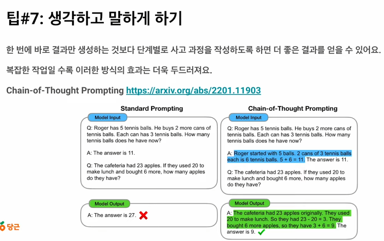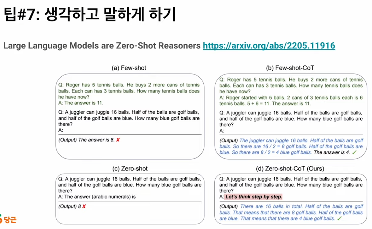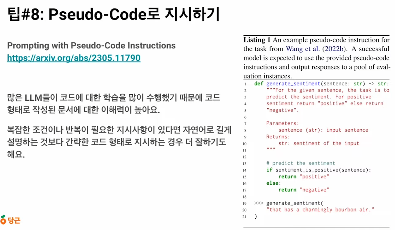 "LLM을 프로덕션에 적용하며 배운 것들 | 당근 ML 밋업 1회" 에서 효과적인 프롬프팅 방법에 대해 다루고 있어서 가지고 왔다.