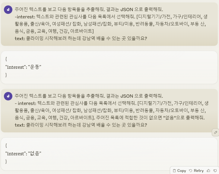 결과적으로 당근에서는 gemini-1.0-pro-001 모델을 사용했는데 내가 테스트를 몇개 할때는 클로드3.5-sonnet을 이용했는데 클로드로 하면 왠만하면 다 알아 먹는다.