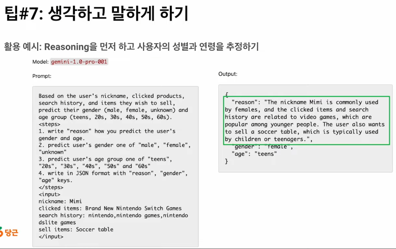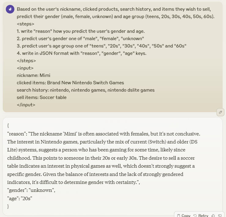 활용 예시: Reasoning을 먼저 하고 사용자의 성별과 연령을 추정하기