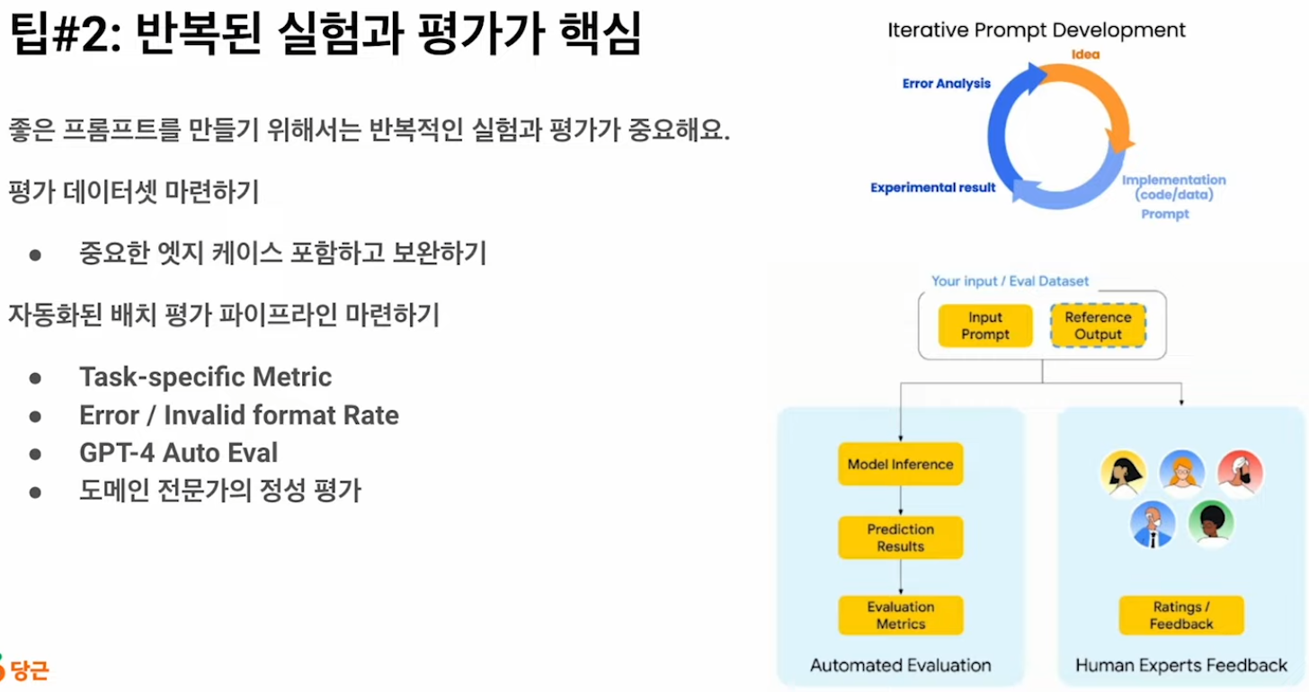 반복 평가를 통해 요구사항을 구체화 하고 평가 데이터를 강화해 나가는 것이 중요해요.