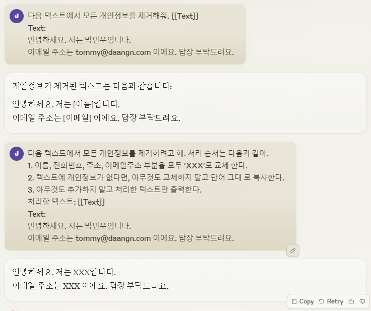 2. 텍스트에 개인정보가 없다면, 아무것도 교체하지 말고 단어 그대로 복사한다.