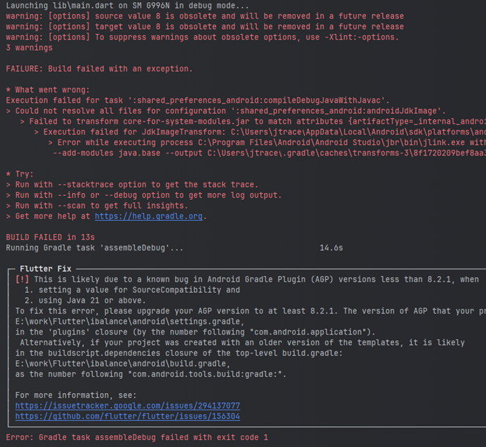 Execution failed for task ':shared_preferences_android:compileDebugJavaWithJavac'.