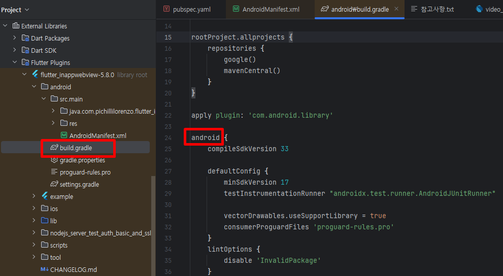 위치: C:\Users\{사용자명}\AppData\Local\Pub\Cache\hosted\pub.dev\{패키지명}\android\build.gradle