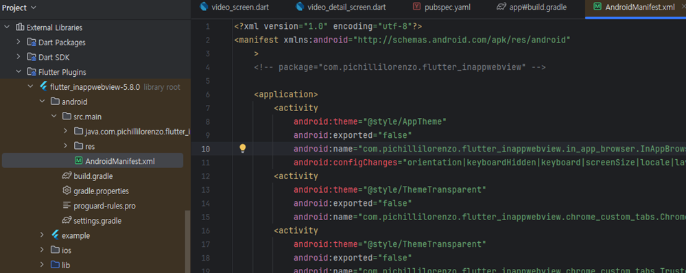 위치: C:\Users\{사용자명}\AppData\Local\Pub\Cache\hosted\pub.dev\{패키지명}\android\src.main.AndroidManifest.xml