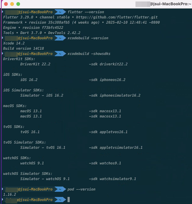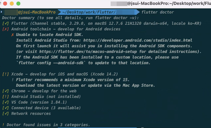 [✓] Flutter (Channel stable, 3.29.0, on macOS 12.7.6 21H1320 darwin-x64, locale ko-KR)