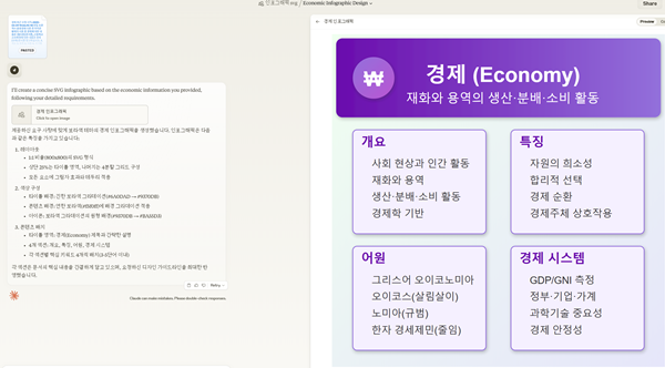 클로드에게 내용을 주고 인포그래픽 svg 형태 만드는 프롬프트를 만들었습니다. 클로드 3.7로 올라가면서 svg 형식의 벡터파일을 만들수 있게 되었습니다.